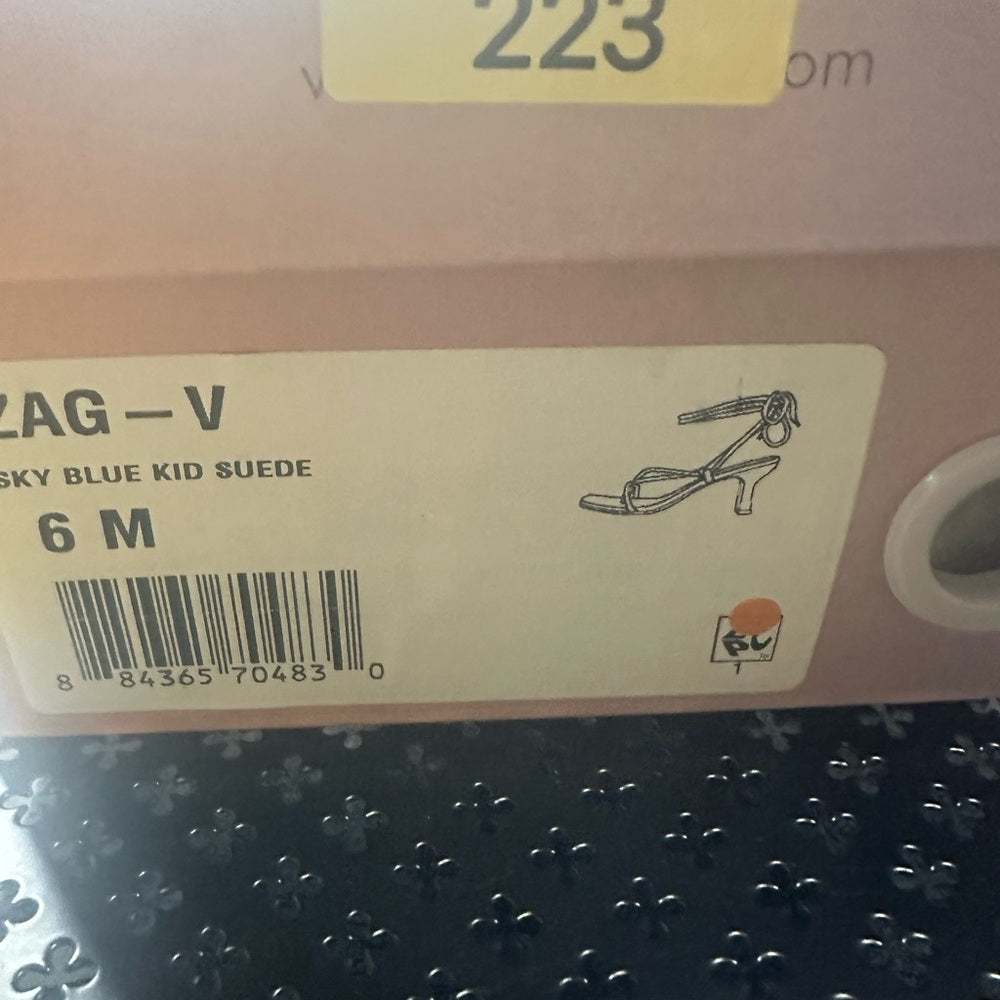 223. NEW SIZE 6 Lisa Vicky Suede Blue Strappy Heels with Kitten Heel