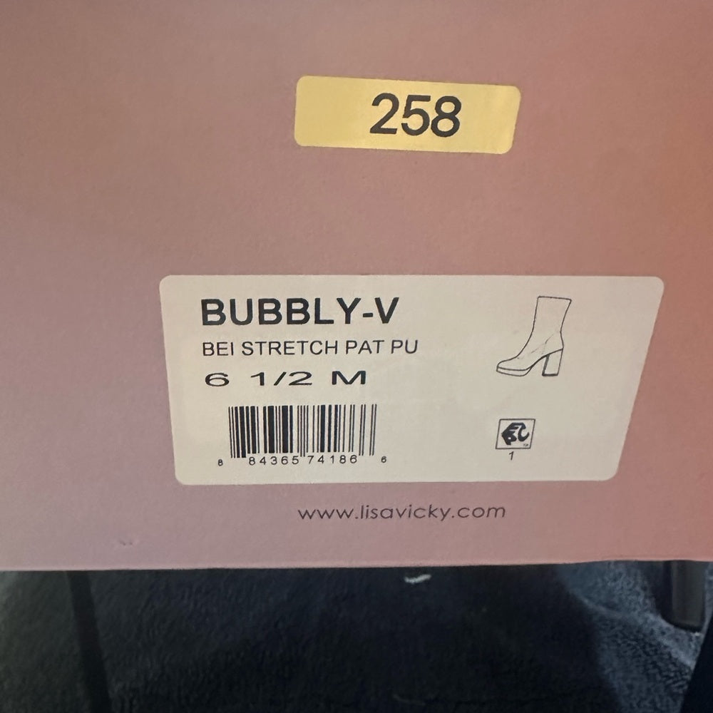258. NEW SIZE 6.5 Cream Chunky Heeled Boots with Glossy Finish