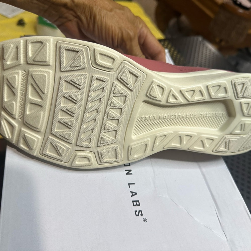 Step into comfort and style with APL's pink and white sneakers, featuring a breathable knit upper and a flexible slip-on design. The cushioned white rubber sole provides excellent support for casual outings or light activities. These sneakers offer a modern, minimalist look that pairs effortlessly with any outfit.