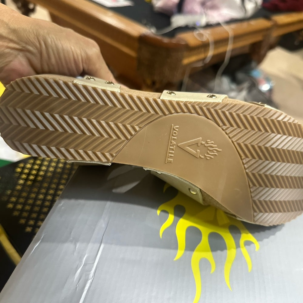 349. NEW SIZE 11 Volatile Metallic Gold Cork Wedge Sandals
