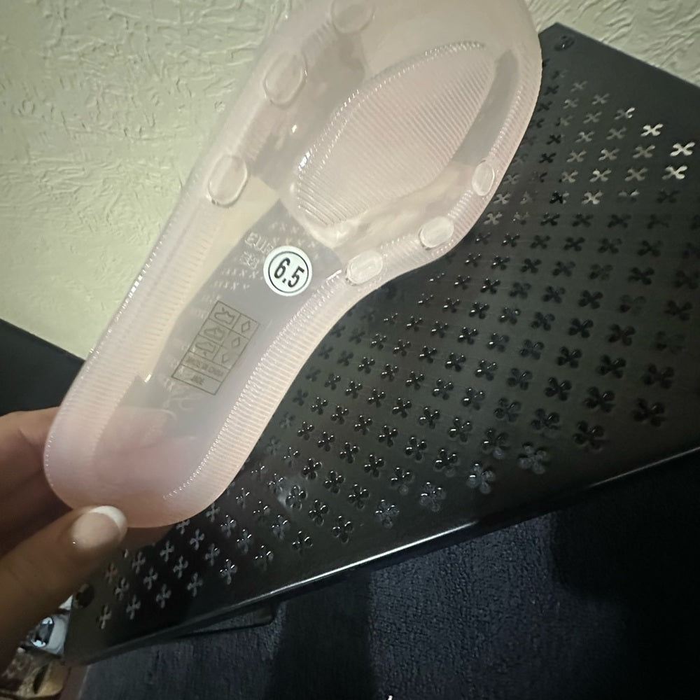 435.437. NEW SUZE 6.5/7 Elegant Clear Sandals with Silver Accents