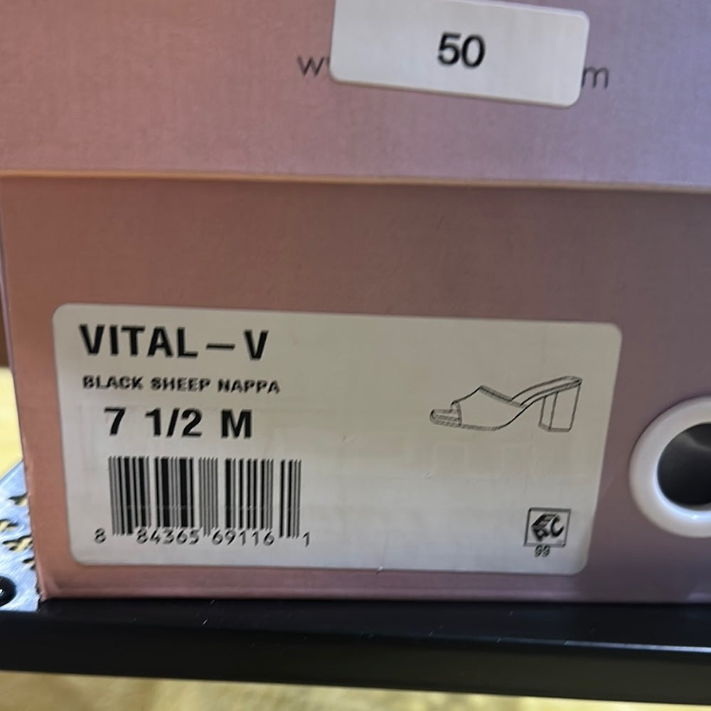 50. NEW SIZE 7 1/2 M Black Block Heel Mules with Square Toe