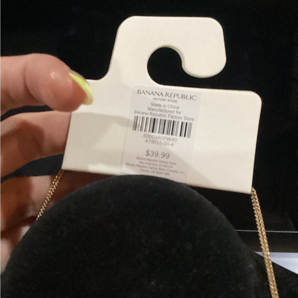 This exquisite Banana Republic necklace showcases a harmonious blend of gold and silver tones, featuring a series of elegantly arranged pendants. The design is both sophisticated and versatile, making it an ideal accessory for both casual and formal occasions.