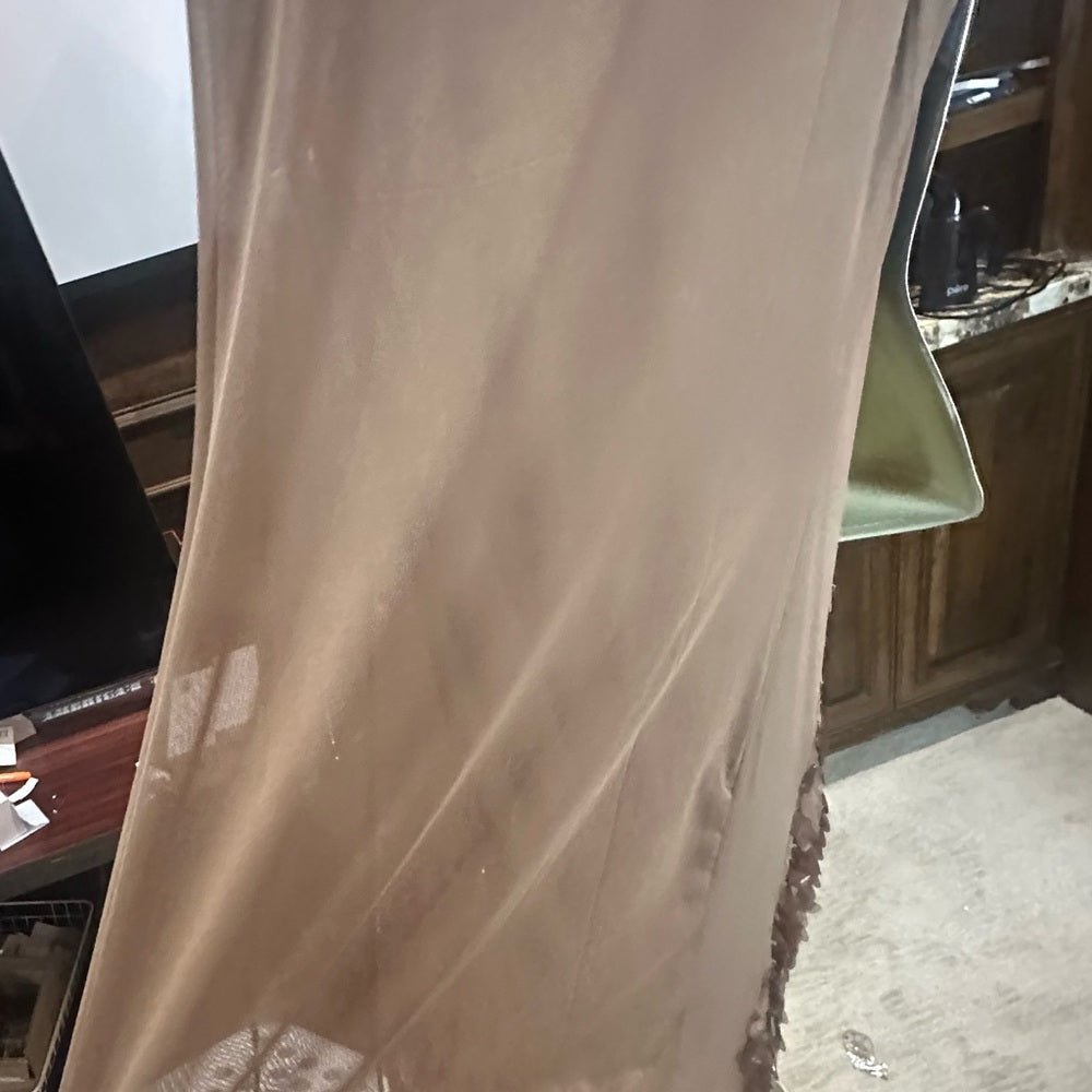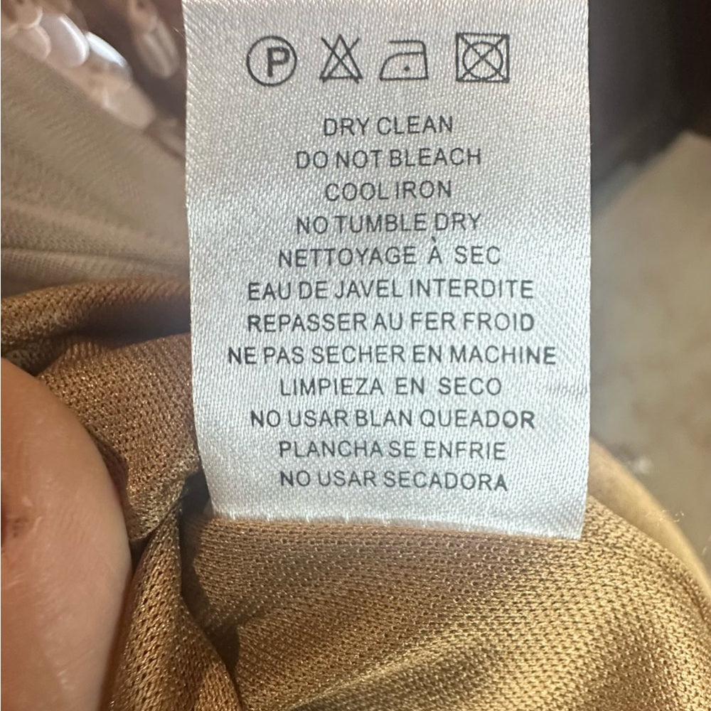 Gold Tan Sequin Sheath Mini Dress Plunge Neckline