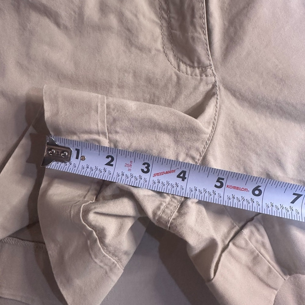 These LOFT cargo shorts in a versatile tan color are crafted from lightweight fabric, making them ideal for warm-weather wear. The classic design features rolled hems for a casual yet polished look, perfect for everyday outings.