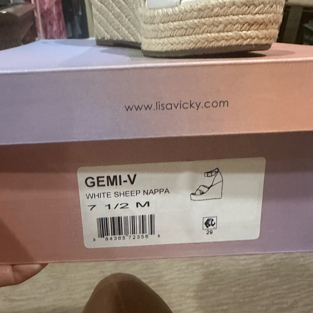 NEW SIZE 7 1/2 White and Tan Wedge Sandals with Espadrille Heel