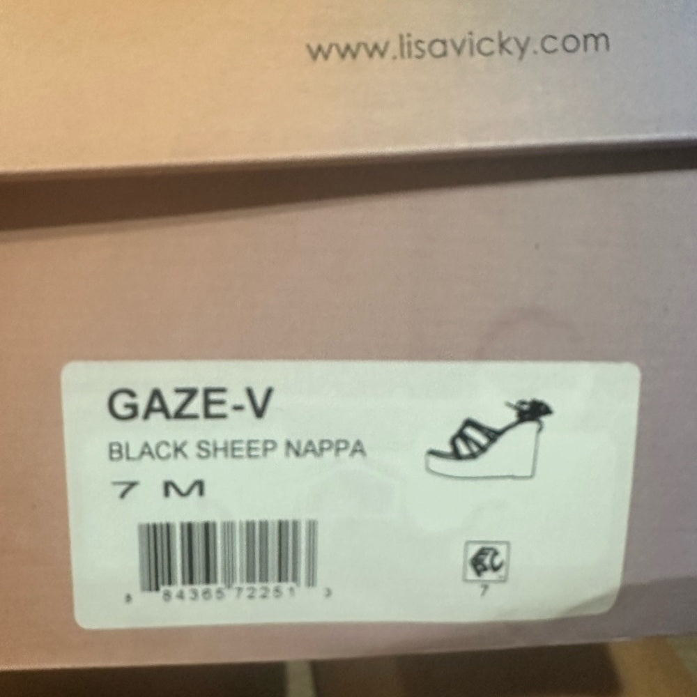These chic wedges feature a sophisticated black and tan color scheme, complemented by a high wedge heel crafted from natural materials. The intricate strappy design and secure ankle tie offer both style and comfort, making them a perfect choice for any occasion.