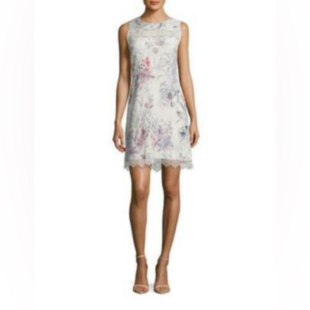 Embrace elegance with this stunning floral lace mini dress. Perfect for any occasion, this dress features a delicate floral design in soft hues.