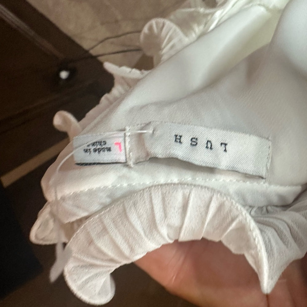 NWOT SIZE L Lush White Asymmetrical Ruffled Tank Top