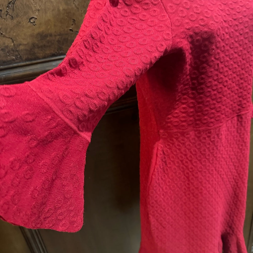 Chic scarlet dress with flared sleeves. Ideal for stylish outings.