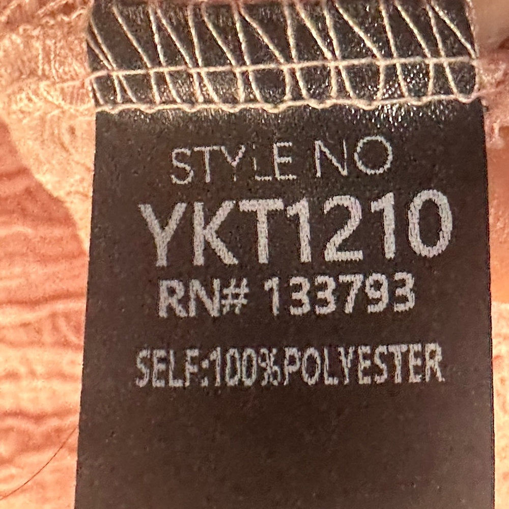 Chic pink lace crop top. Features a V-neck and short sleeves. Perfect for casual outings.