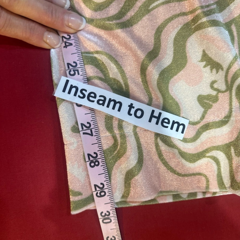 Elevate your wardrobe with these stylish swirl pattern pants. Featuring a chic blend of pink and green, these pants offer both comfort and flair.