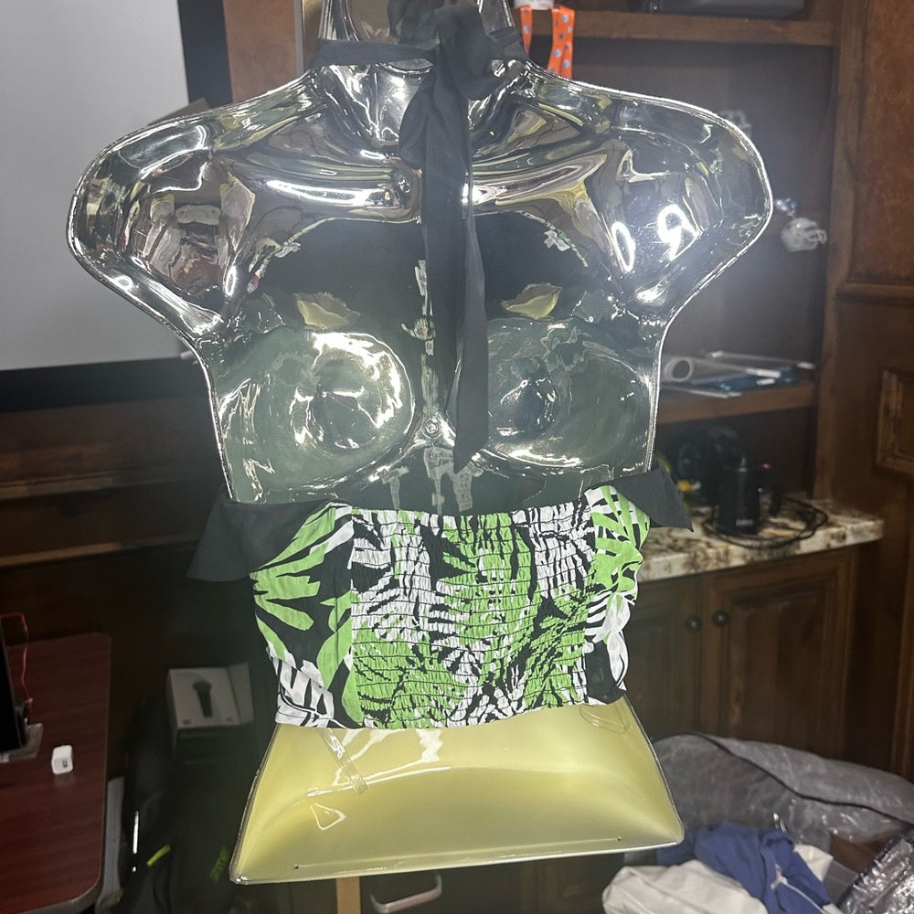 NWOT SIZE M Unique Vintage Green Halter Ruffled Tank Top