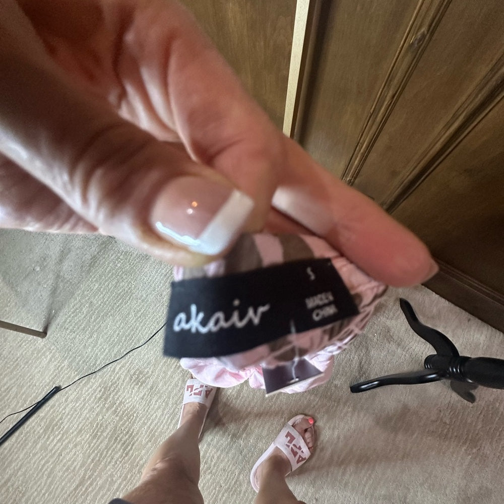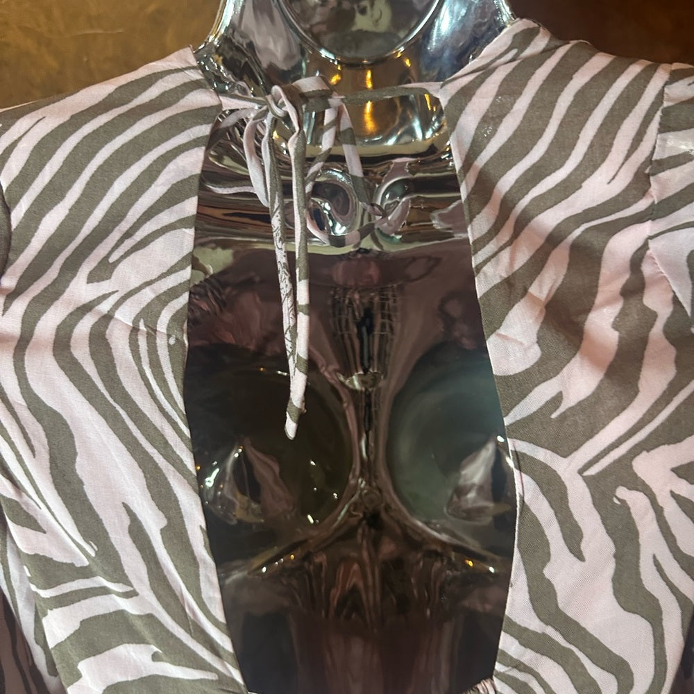 NWOT SIZE S Brown Pleated Ruffled Mini Dress with Plunge Neckline