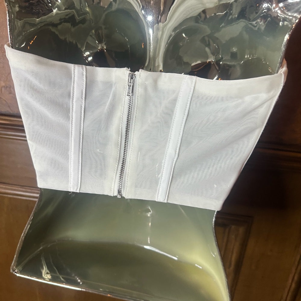 NWOT SUZE XS Bardot White Strapless Crop Top