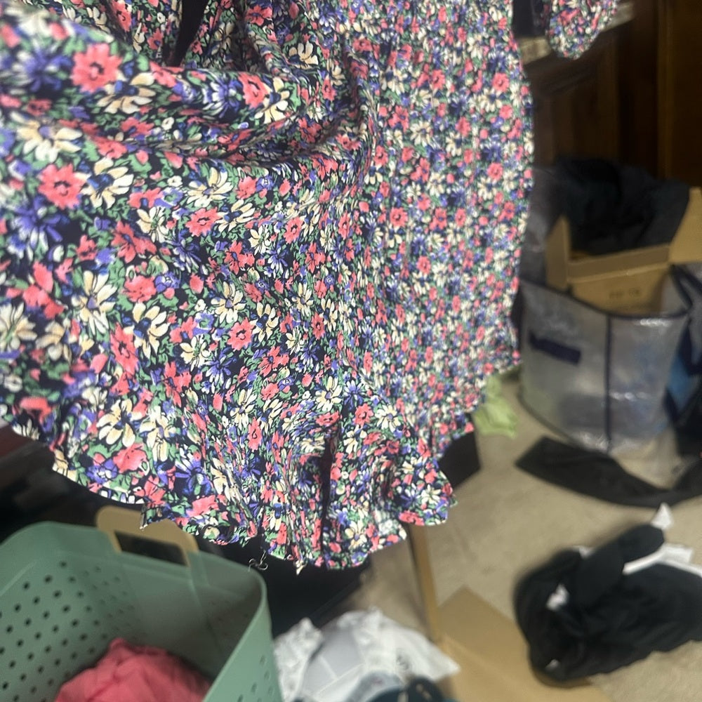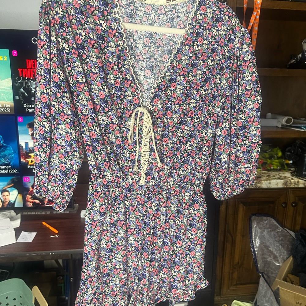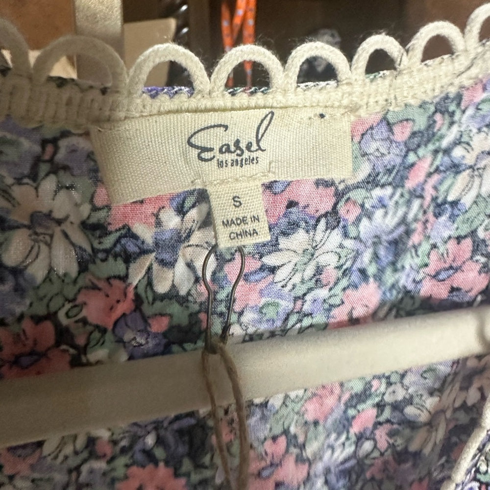 NWT S Easel Blue and Red Jumpsuit with Elastic Waist and Off-the-Shoulder
