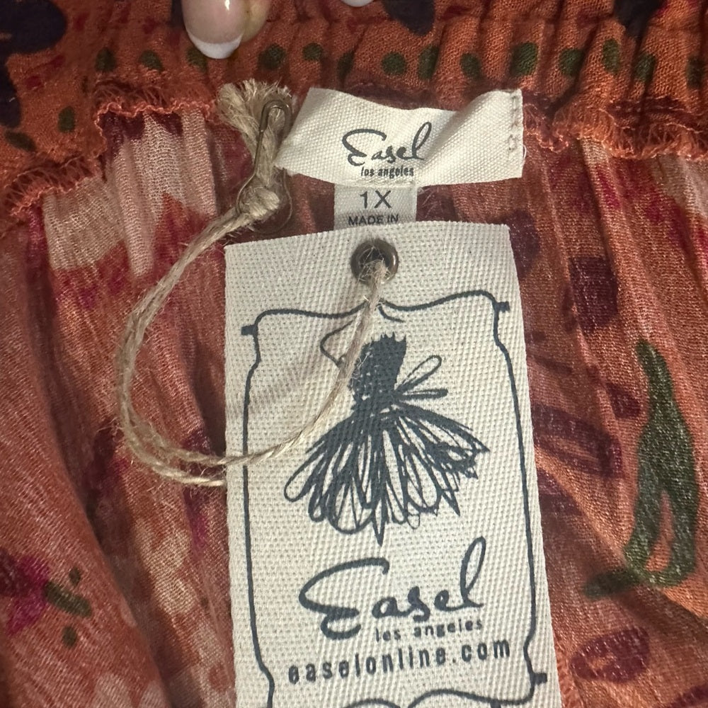 NWT SIZE 1X Easel Vibrant Orange Patterned Long Sleeve Dress