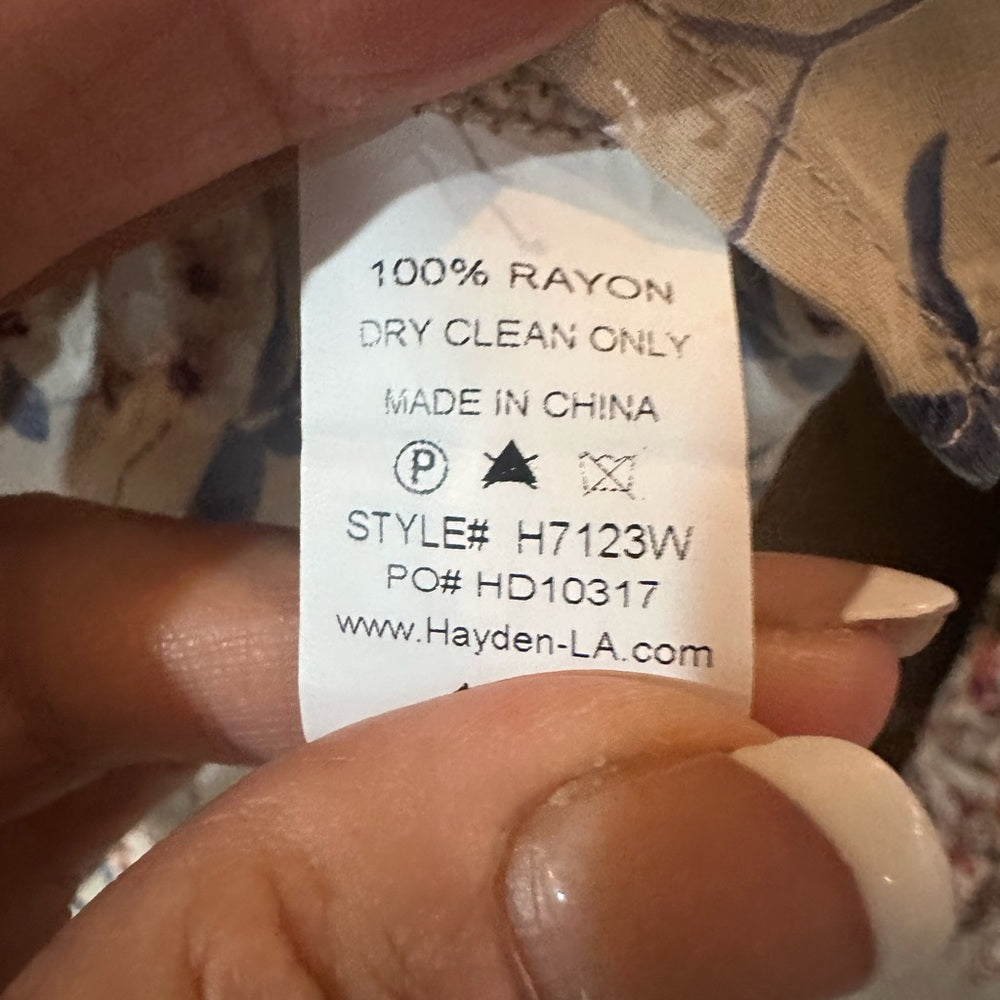 This relaxed camisole from Hayden features a flutter sleeve design and is embellished with a delicate floral pattern in shades of pink and blue. The lightweight fabric offers a comfortable fit, making it a versatile addition to any wardrobe.
