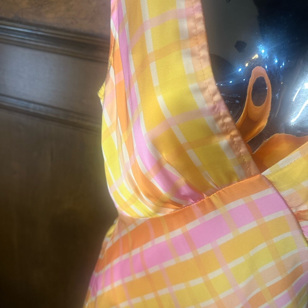 NWT SIZE 4/8 Peppermayo Asymmetrical Plaid Dress in Pink and Yellow