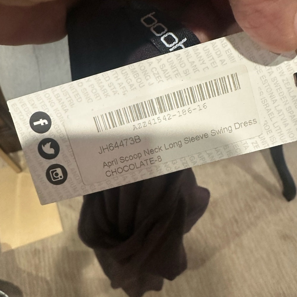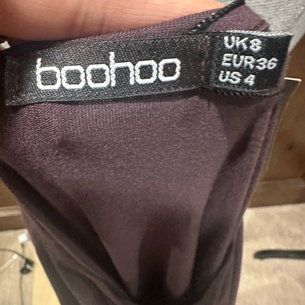 Elegant Boohoo dress with long sleeves. Soft fabric and relaxed fit. Ideal for any occasion.
