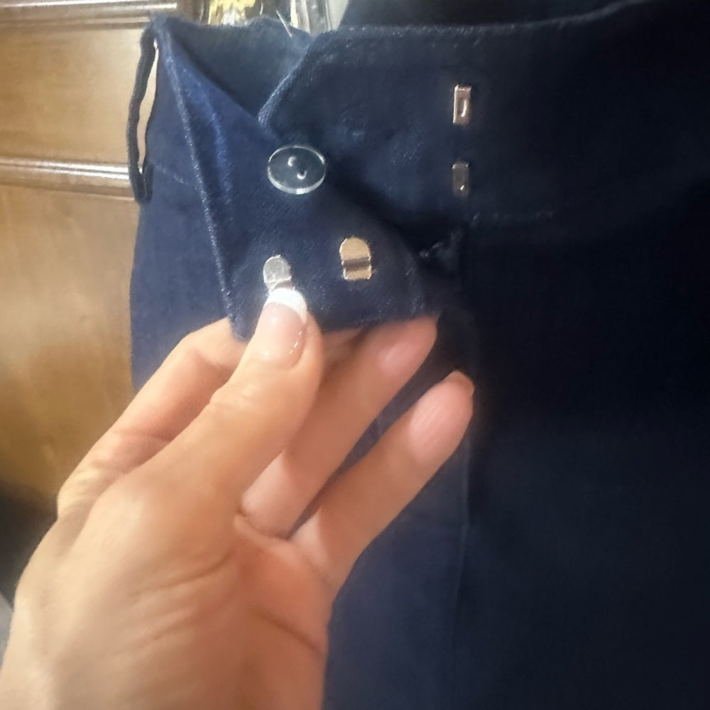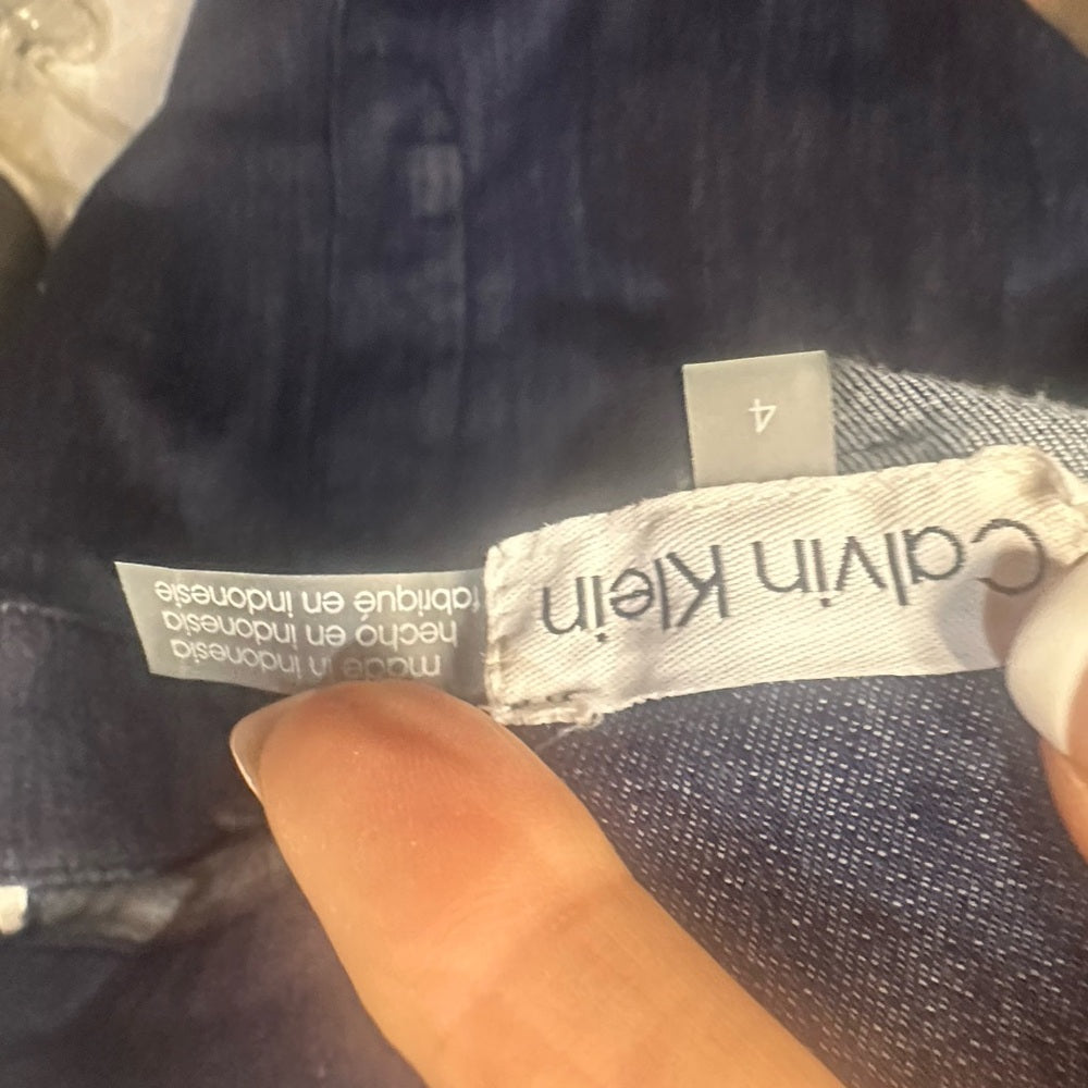 This sophisticated black pencil skirt by Calvin Klein is perfect for both work and casual occasions. Its knee-length design and sleek silhouette provide a polished and versatile look, making it an essential addition to any wardrobe.