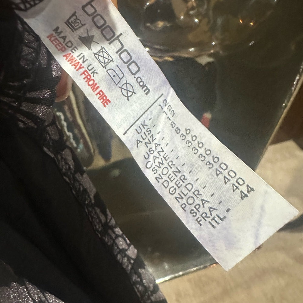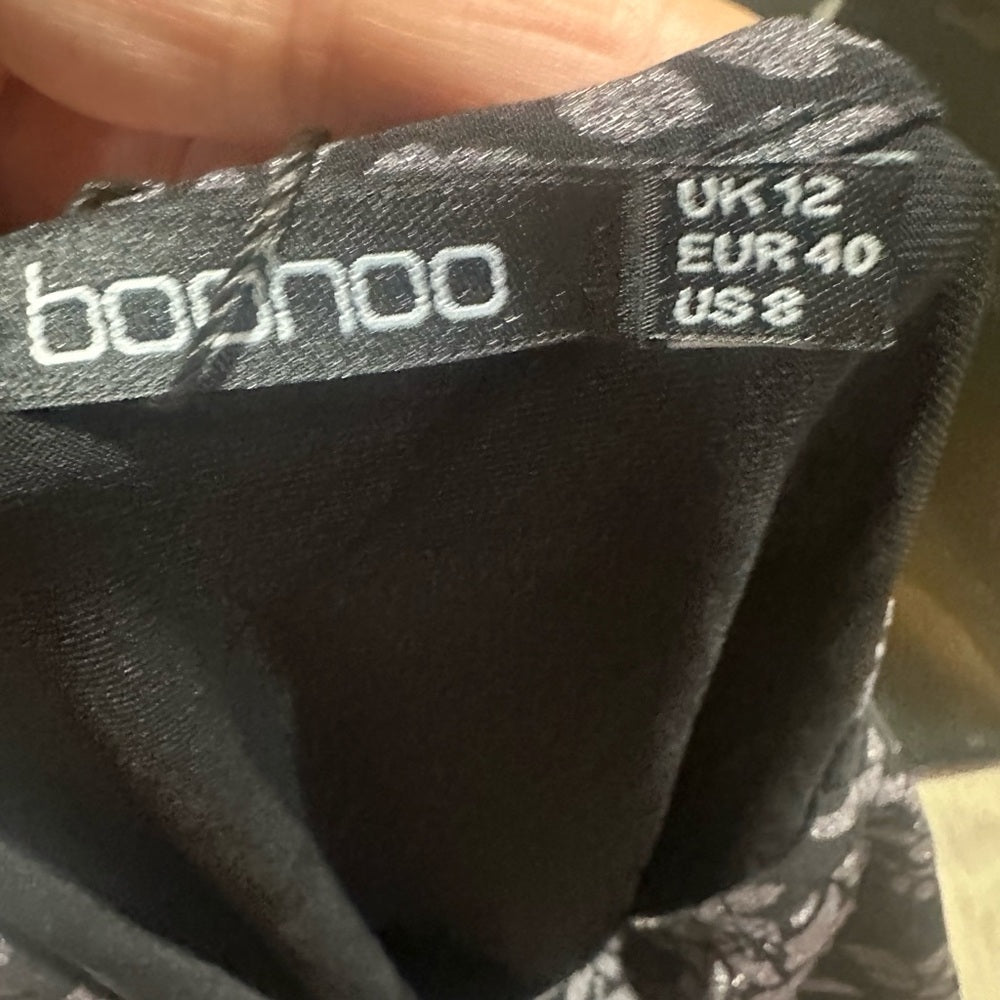 NWT SIZE 8 Boohoo Elegant Black and Cream Patterned Long Sleeve Dress