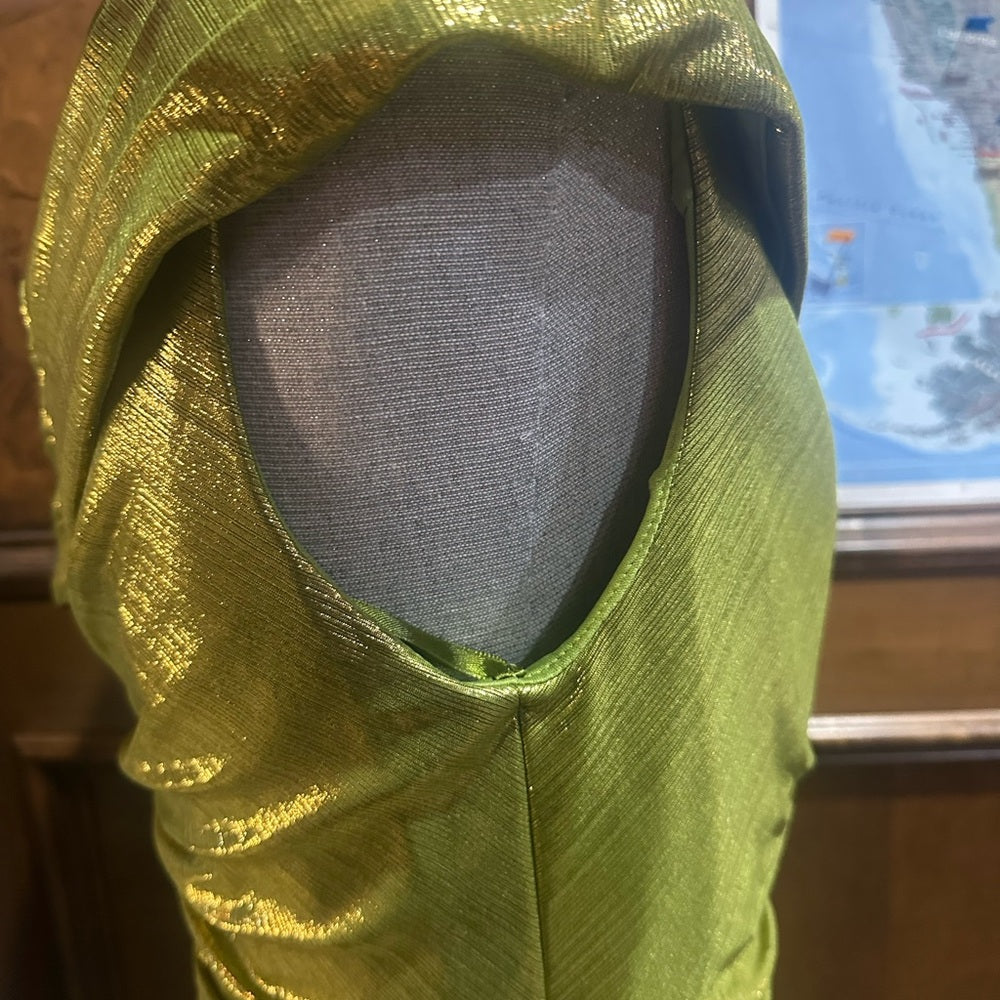 Turn heads in this glamorous one-shoulder dress. The shimmering gold fabric adds a touch of luxury to any event.