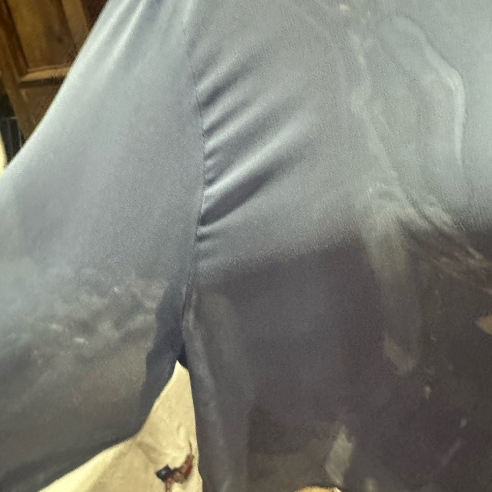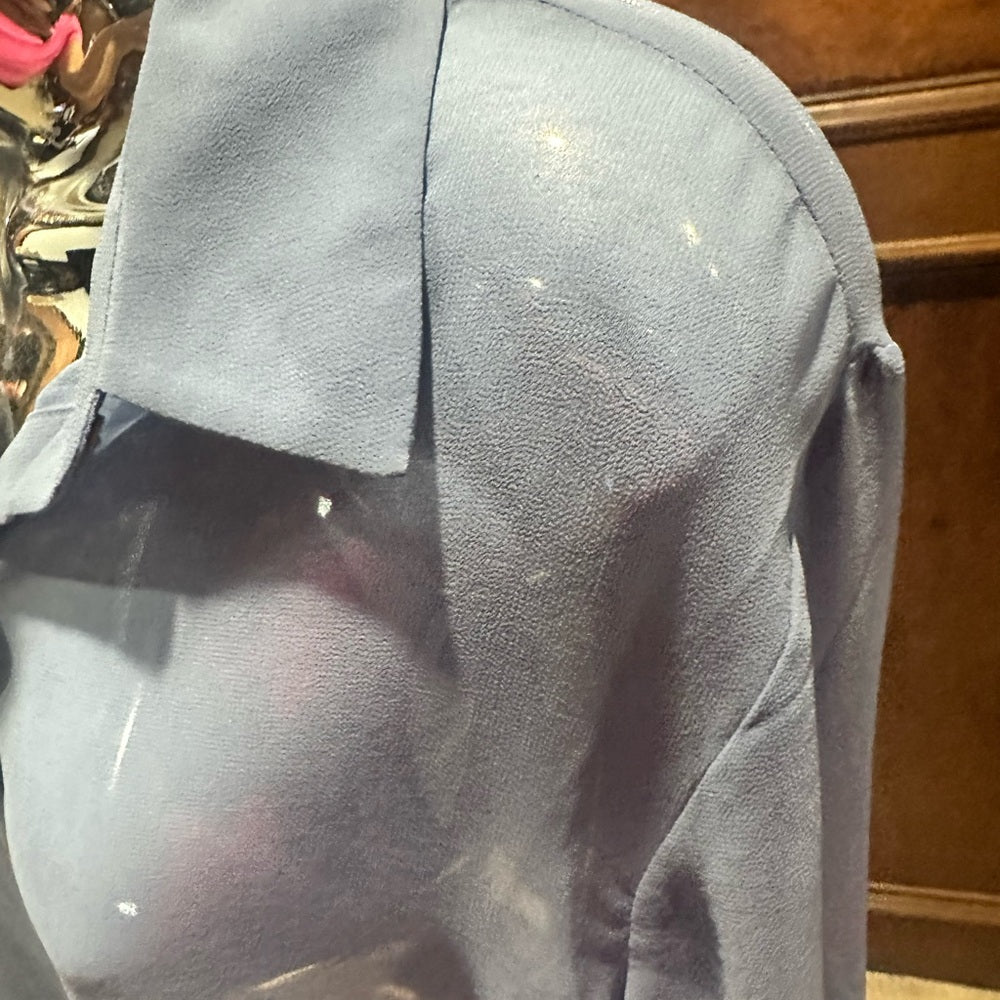 Discover timeless elegance with this chic blue blouse. Its button-up design and classic collar make it a versatile choice for any wardrobe.