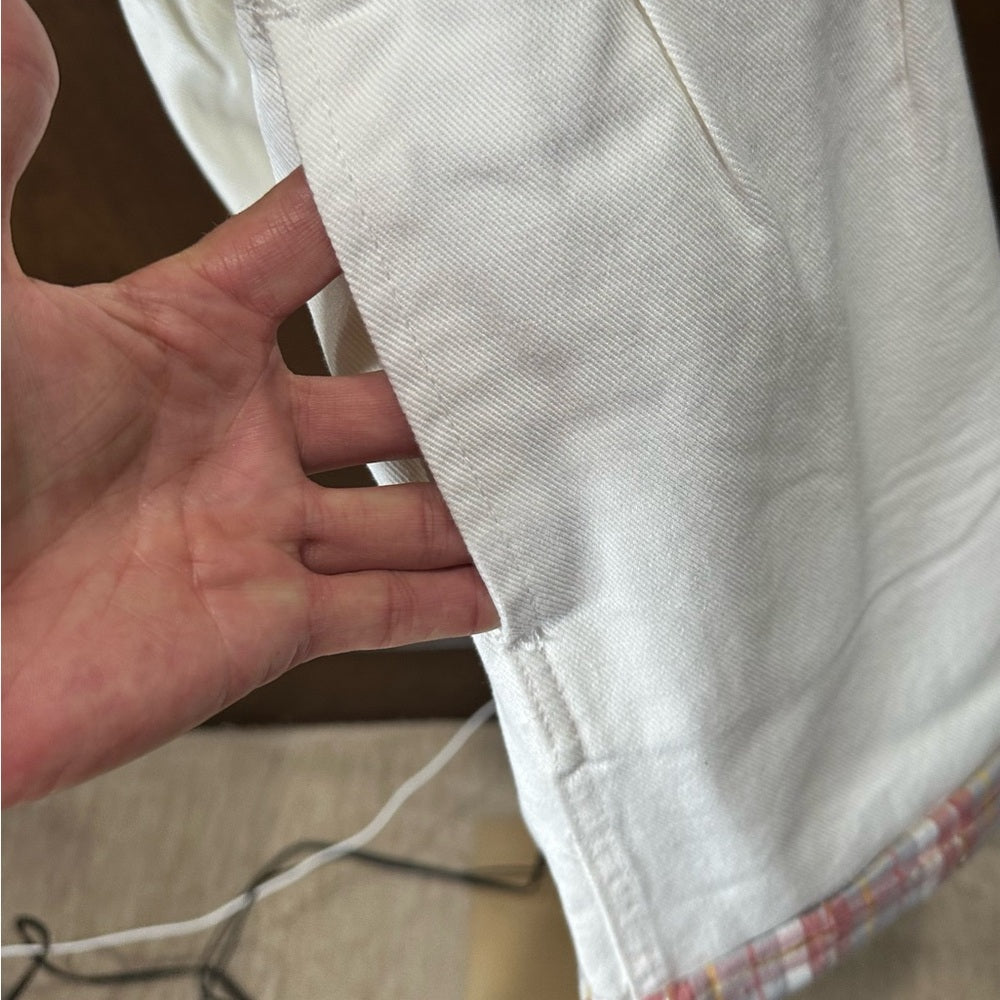 NWT SIZE L Easel Pink and White Bermuda Shorts with Plaid Accents