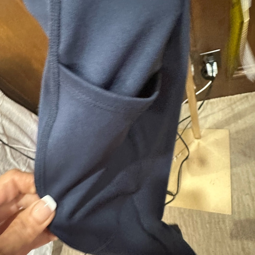 Sleek navy leggings. Comfortable fit. Perfect for workouts.