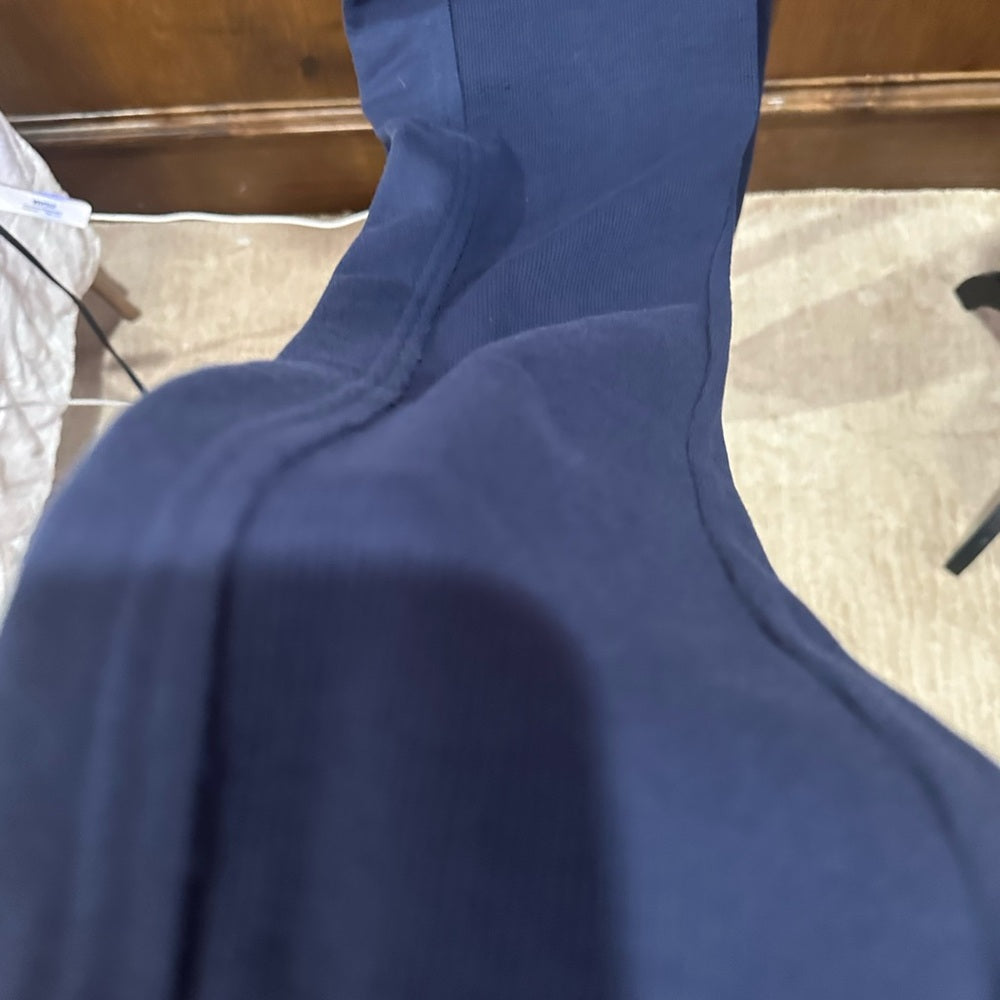 Stylish navy track pants. Comfortable fit. Perfect for workouts or casual wear.