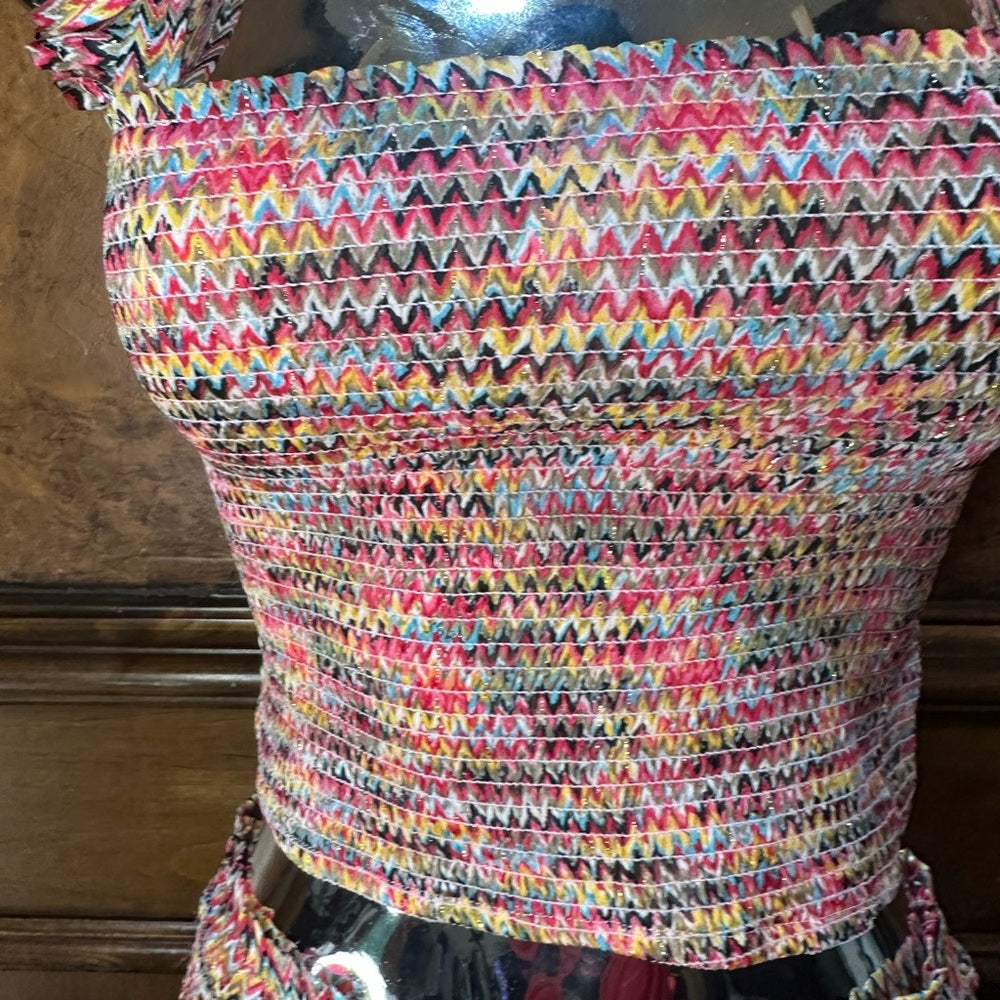 This delightful pink mini dress showcases a skater silhouette with charming ruffled accents, ideal for a night out or a casual resort day. The airy fabric and tiered design offer a graceful flow, adding a touch of sophistication to your ensemble.