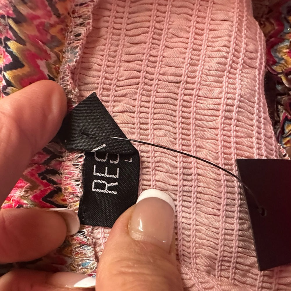 NWT SIZE L Pink Skater Mini Dress with Ruffled Elegance