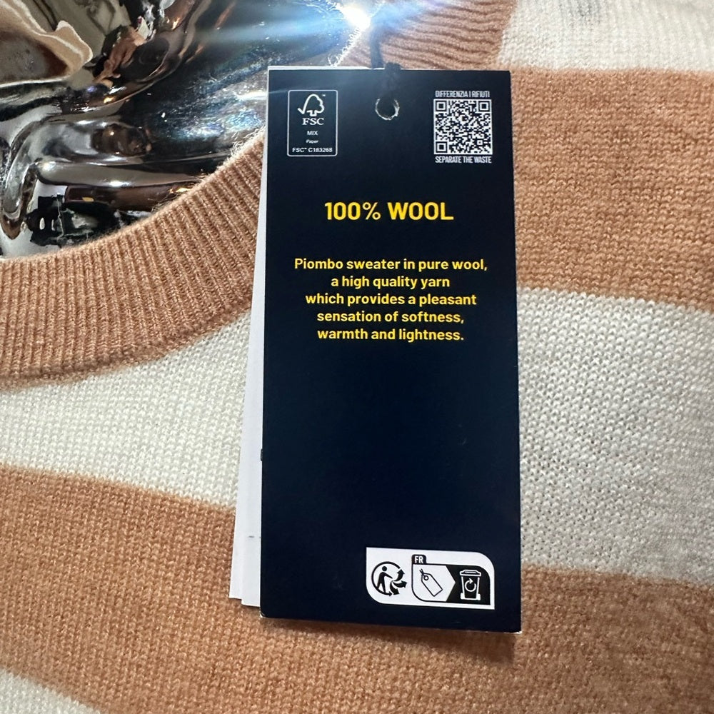 NWT SIZE L Piombo Women's Tan and Cream Striped Sweater