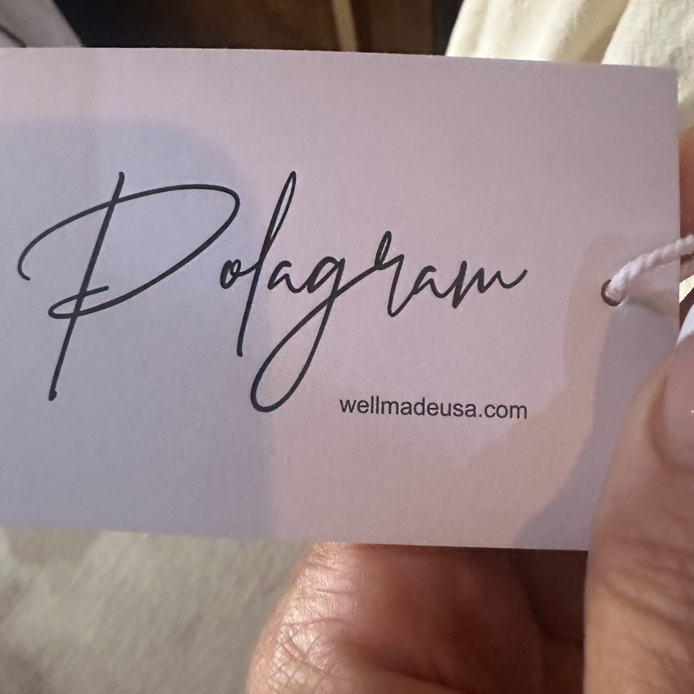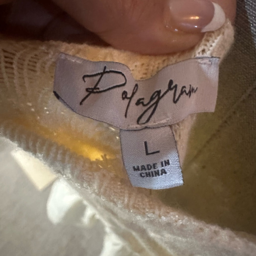 NWT SIZE L Polagram White and Pink Peplum Blouse with Puffed Sleeves