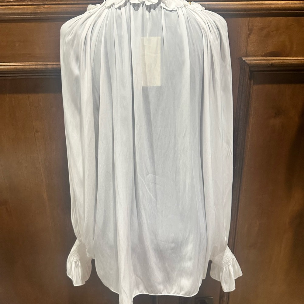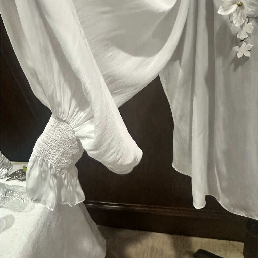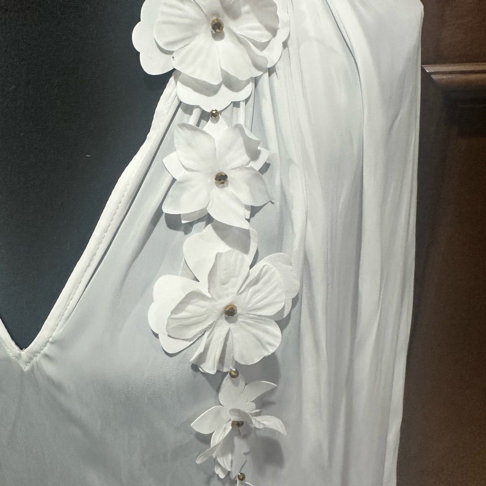 NWT SIZE L Ramy Brook Elegant White Blouse with Floral Details