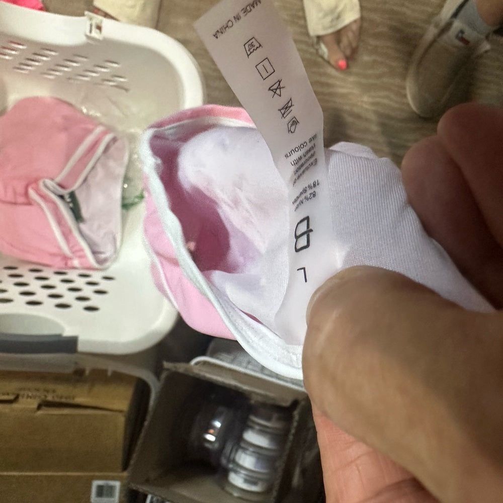 NWT SIZE L Sporty Pink and White Bikini with High-Waisted Design
