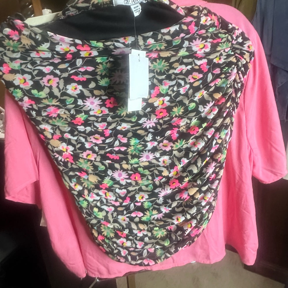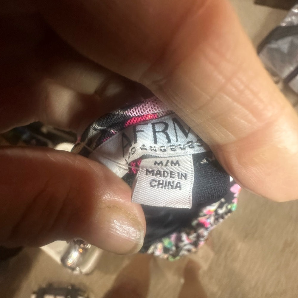 NWT SIZE M AFRM Black and Pink Ruched Midi Pencil Skirt