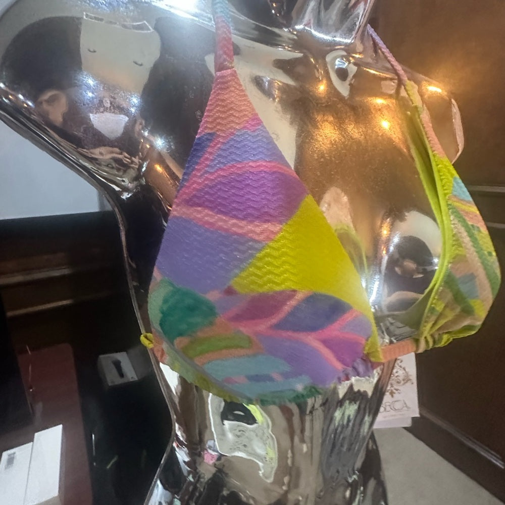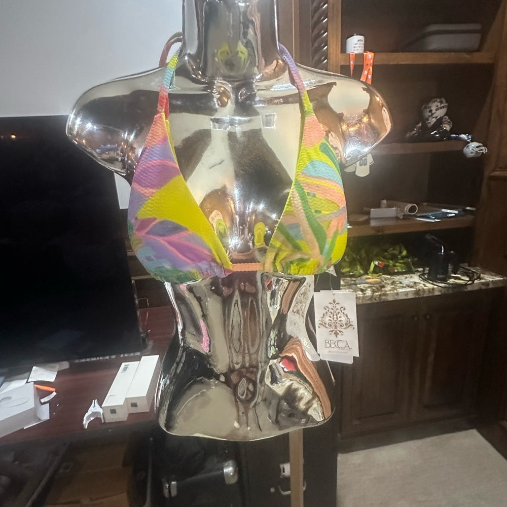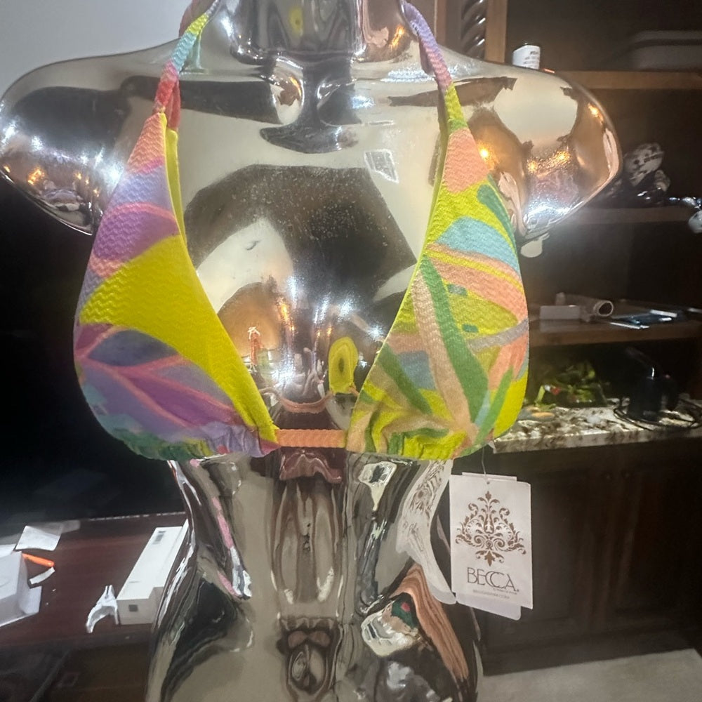 NWT SIZE M BECCA Yellow and Pink Bikini Minimalist Triangle Swimwear