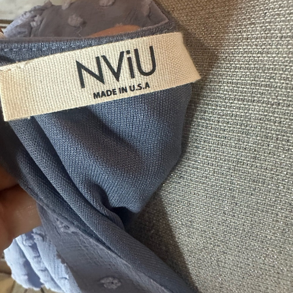 NWT SIZE M Blue Puff Sleeve Ruffled Midi Dress