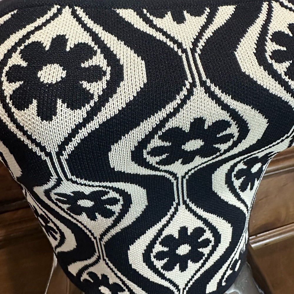 Stylish crop top with bold black and white pattern. Strapless design. Perfect for a chic look.