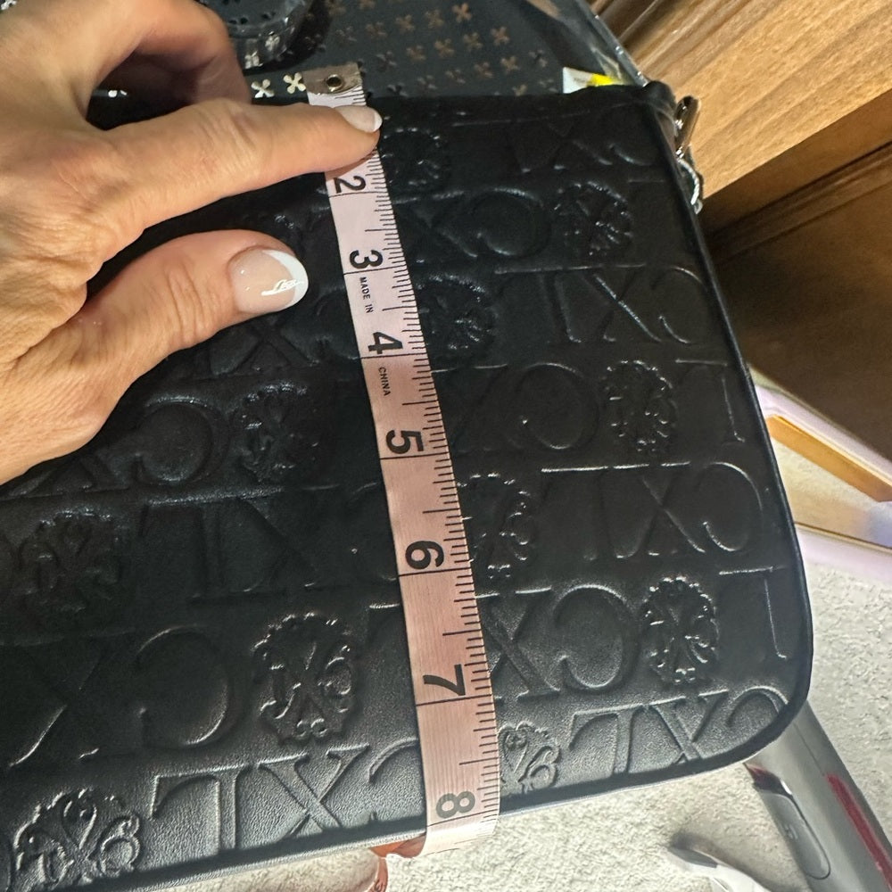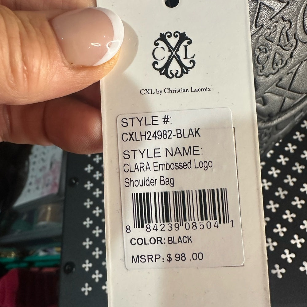NWT SIZE OS Christian Lacroix Black Embossed Shoulder Bag with Silver Accent