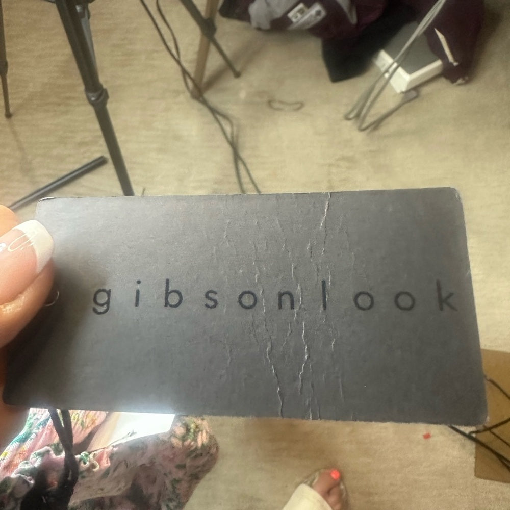 Chic floral mini skirt by Gibson. Features a vibrant pink base with green and yellow floral patterns. Perfect for a stylish look.