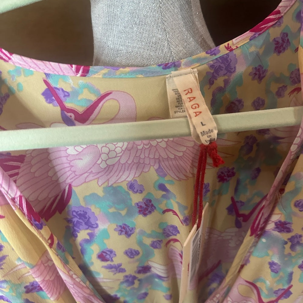 NWT SIZE S/L RAGA Pink and Blue V-Neck Bishop Sleeve Sundress