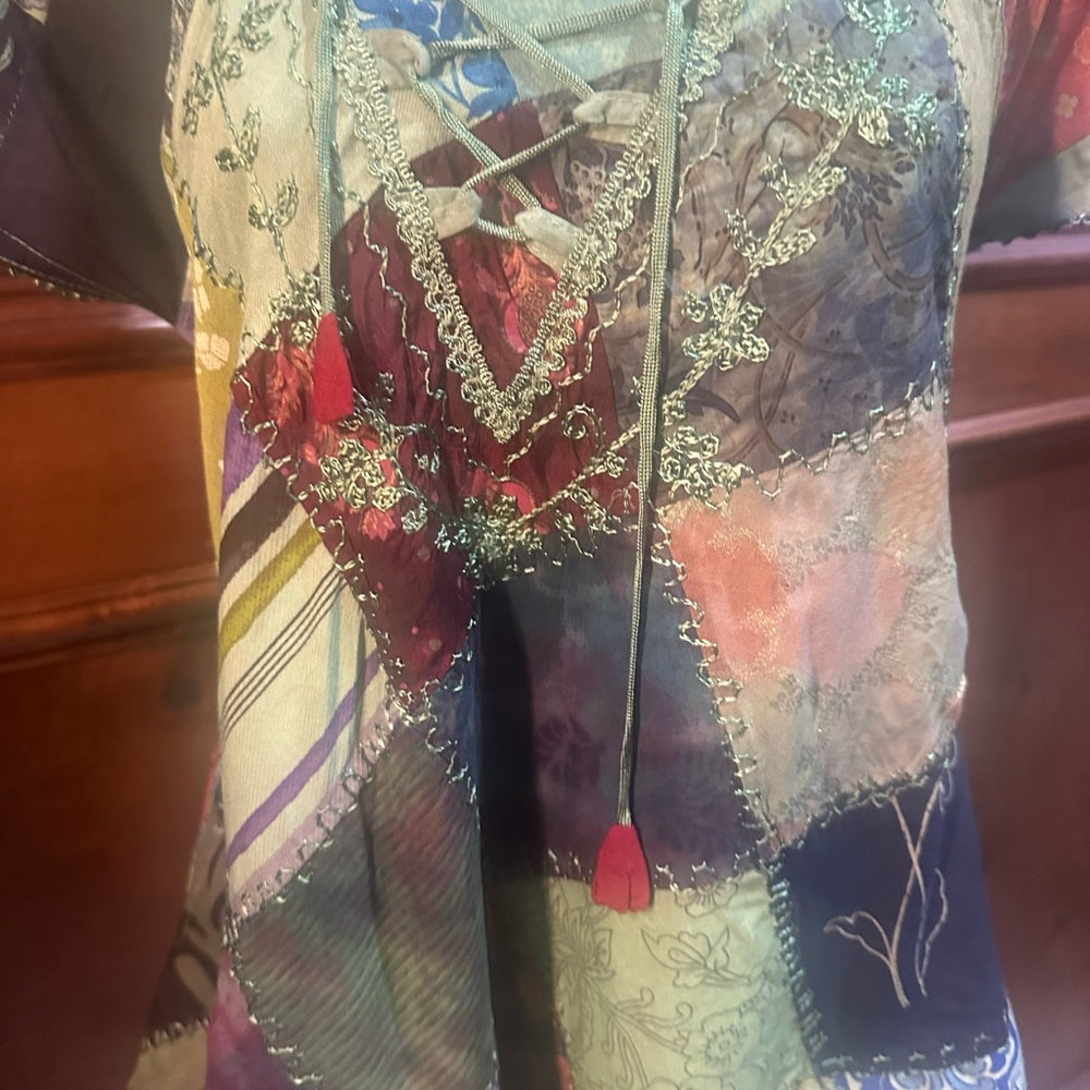 NWT SIZE S/M Advance Apparels Green Patchwork Tunic