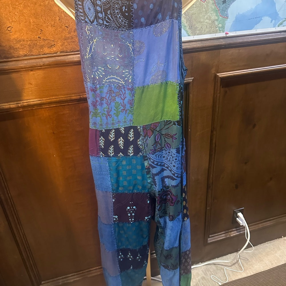 NWT SIZE S/M will fit up to a L Advance Apparels Blue Patchwork Jumpsuit