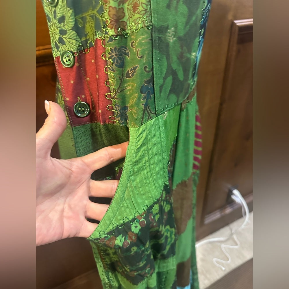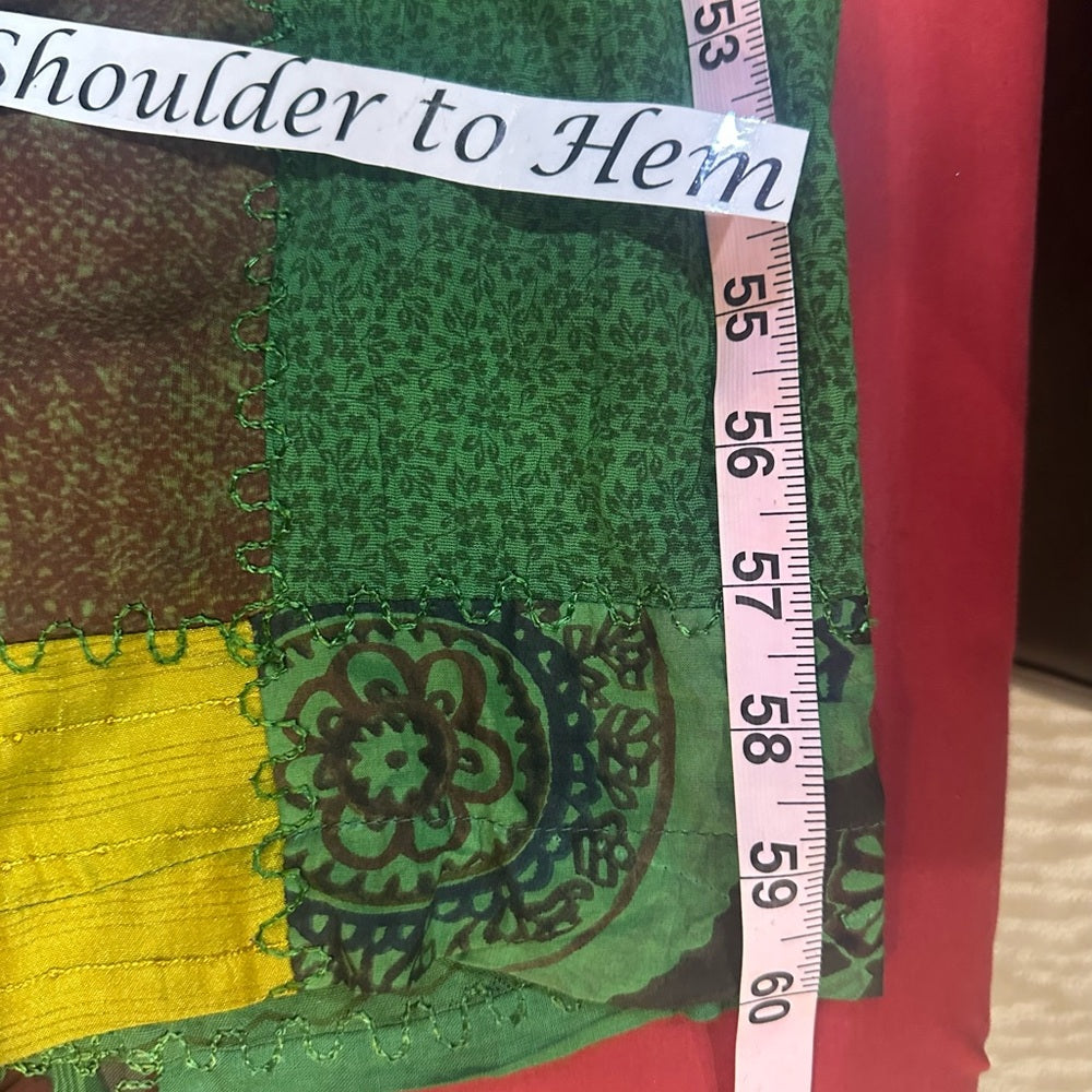 Unique patchwork style. Sleeveless with flowing legs. Perfect for casual wear.