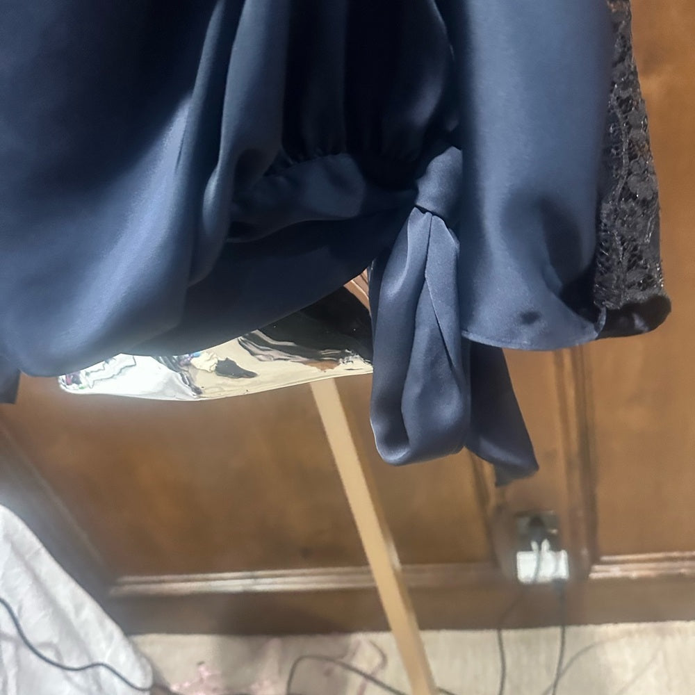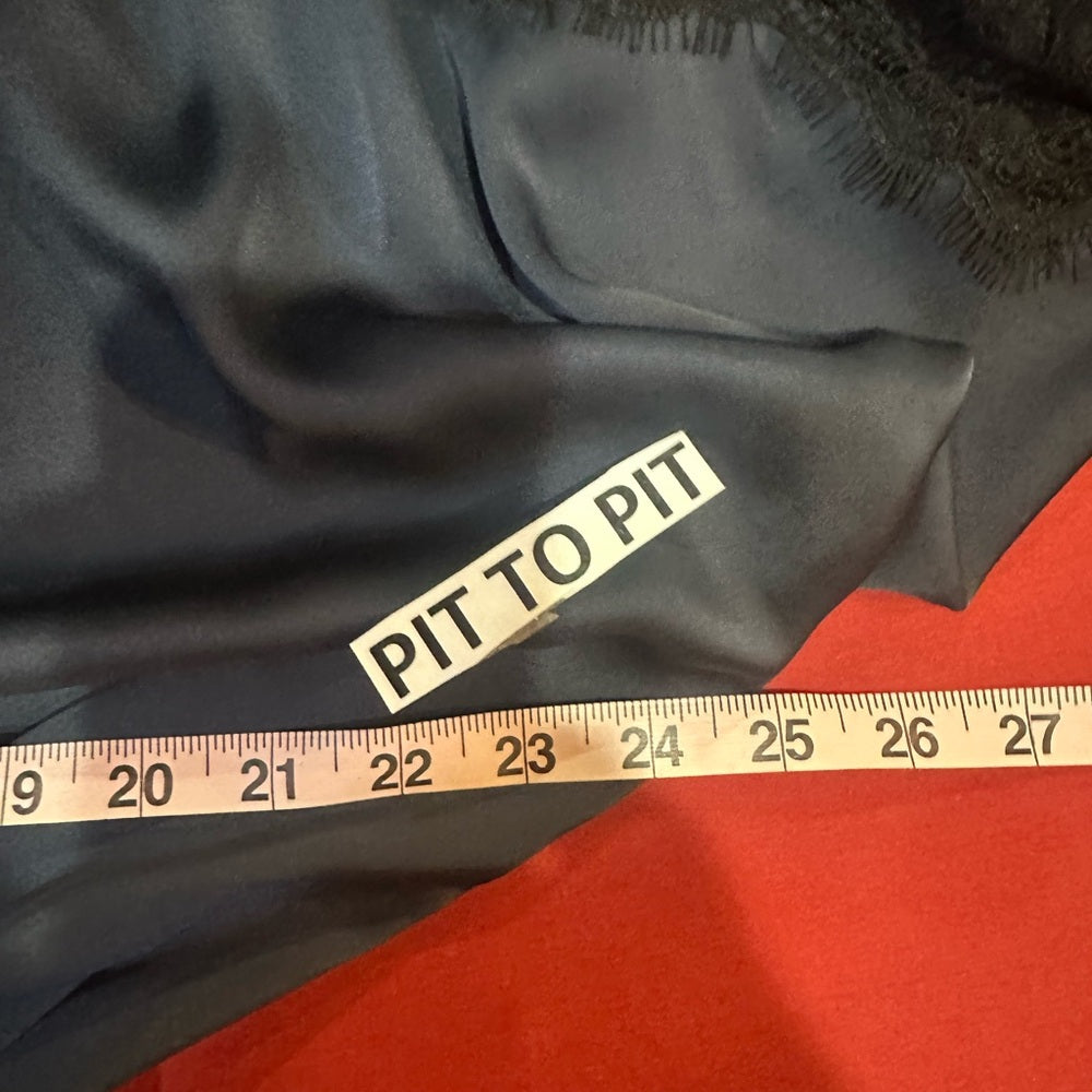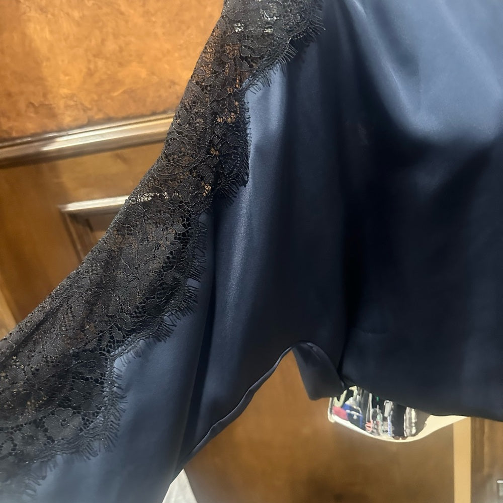 NWT SIZE S Ramy Brook Black Satin Blouse with Lace Sleeves