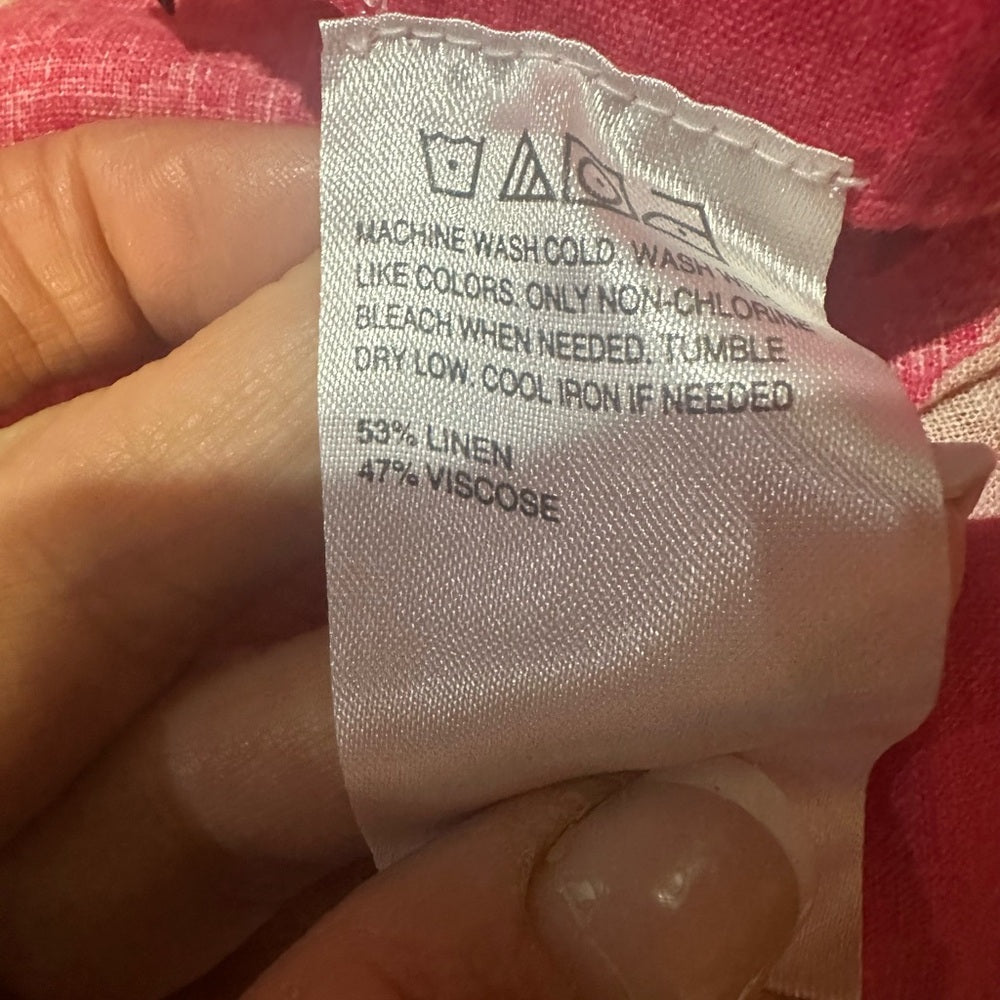 Chic coral midi skirt with leaf pattern. Button-down front. Perfect for any occasion.