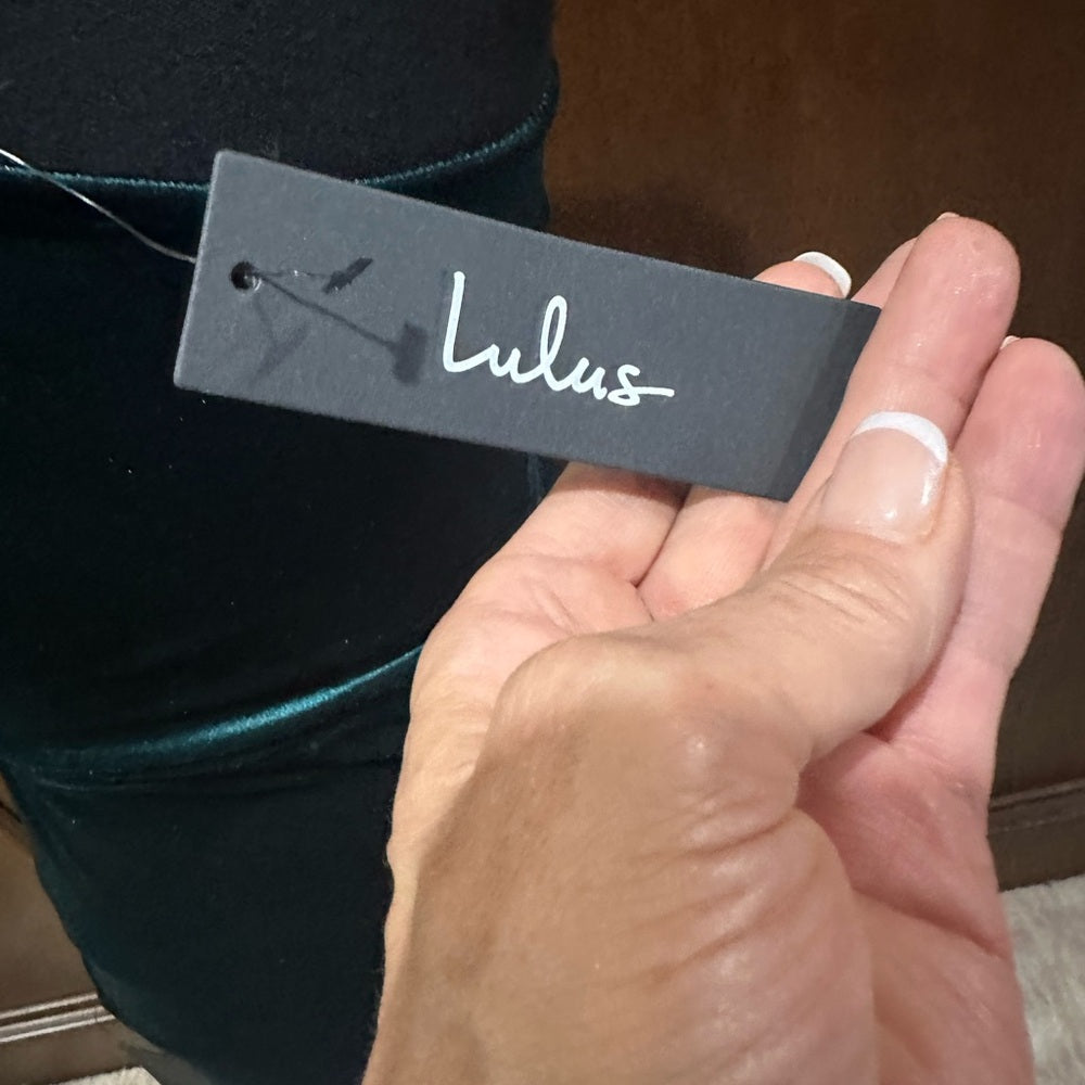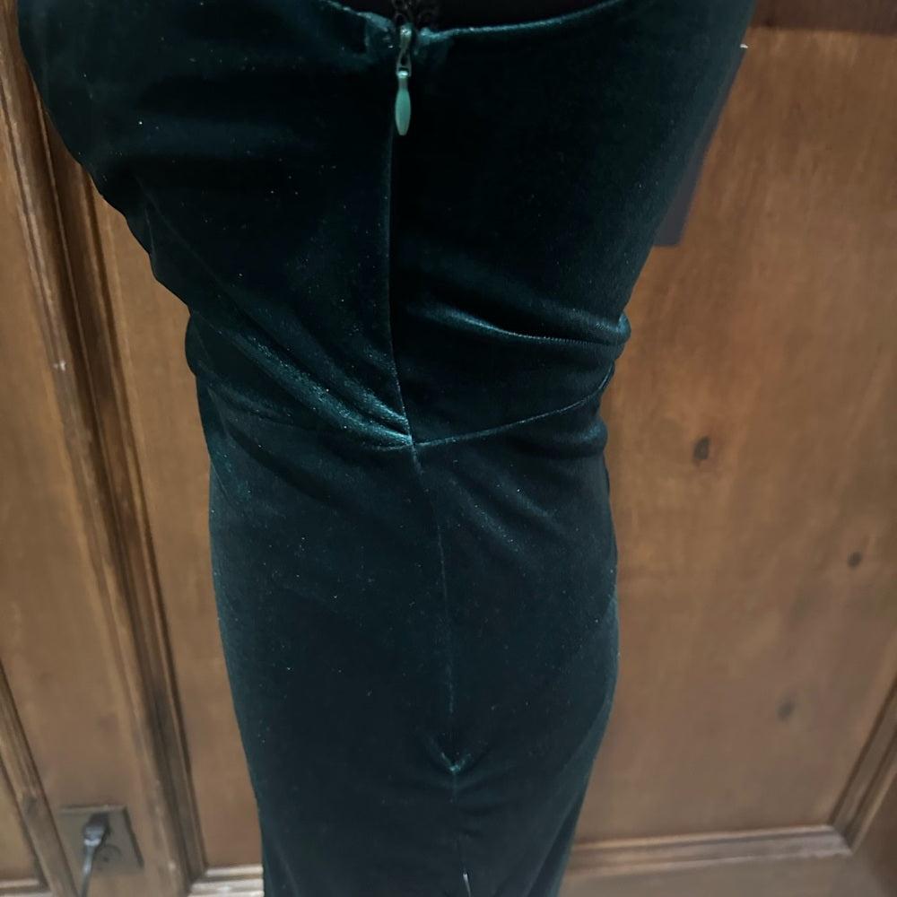 NWT SIZE XS Lulu's One-Shoulder Deep Green Velvet Dress